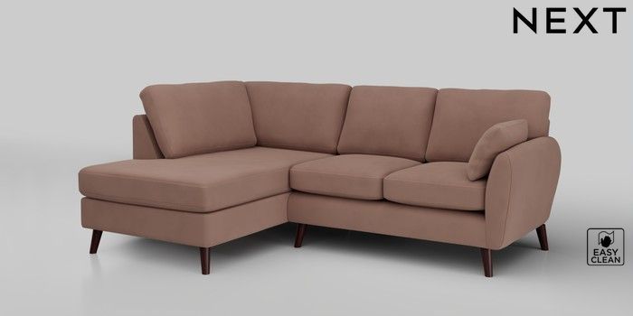 6.12.1 Buy Wilson Medium Corner Chaise - Left Hand Plush Velvet Easy Clean Mid Natural Retro Tapered - Dark Brown from the Next UK online shop Click here to use our accessible website