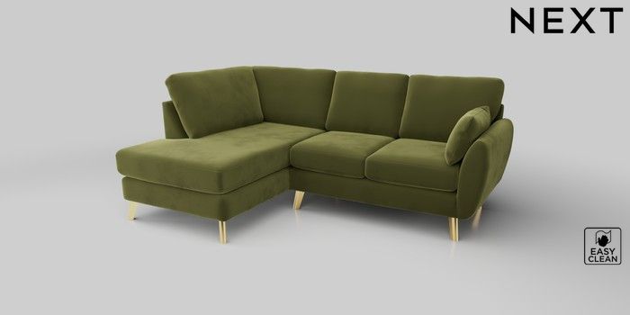 6.12.1 Buy Wilson Medium Corner Chaise - Left Hand Plush Velvet Easy Clean Mid Olive Green Metal Tapered - Gold from the Next UK online shop Click here to use our accessible website