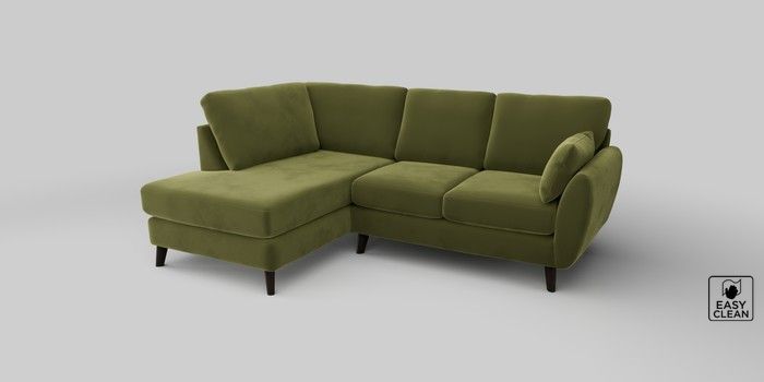 6.12.1 Buy Wilson Medium Corner Chaise - Left Hand Plush Velvet Easy Clean Mid Olive Green Retro Tapered - Dark from the Next UK online shop Click here to use our accessible website