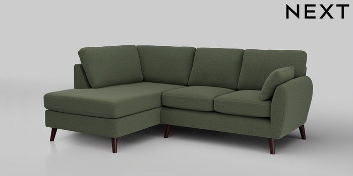 6.12.1 Buy Wilson Medium Corner Chaise - Left Hand Relaxed Linen Look Dark Green Retro Tapered - Dark Brown from the Next UK online shop Click here to use our accessible website