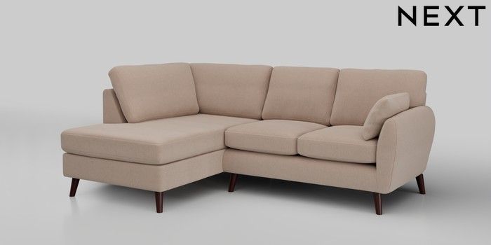 6.12.1 Buy Wilson Medium Corner Chaise - Left Hand Relaxed Linen Look Mid Natural Retro Tapered - Dark Brown from the Next UK online shop Click here to use our accessible website