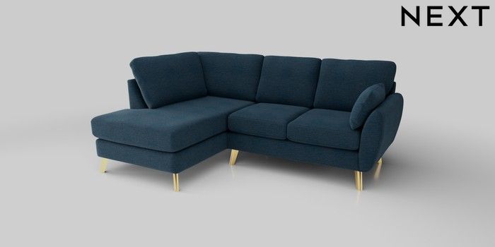 6.12.1 Buy Wilson Medium Corner Chaise - Left Hand Ripple Chenille Dark Blue Metal Tapered - Gold from the Next UK online shop Click here to use our accessible website