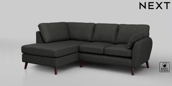 6.12.1 Buy Wilson Medium Corner Chaise - Left Hand Tweedy Blend Easy Clean Charcoal Grey Retro Tapered - Dark Brown from the Next UK online shop Click here to use our accessible website