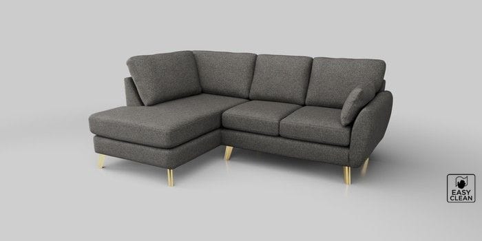 6.12.1 Buy Wilson Medium Corner Chaise - Left Hand Tweedy Blend Easy Clean Dark Grey Metal Tapered - Gold from the Next UK online shop Click here to use our accessible website
