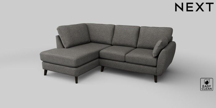 6.12.1 Buy Wilson Medium Corner Chaise - Left Hand Tweedy Blend Easy Clean Dark Grey Retro Tapered - Dark from the Next UK online shop Click here to use our accessible website