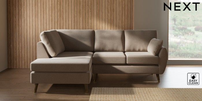 7.3.1 Buy Wilson Medium Corner Chaise - Left Hand Tweedy Blend Easy Clean Light Dove Natural Low Retro Tapered Metal Cap - Mid from the Next UK online shop