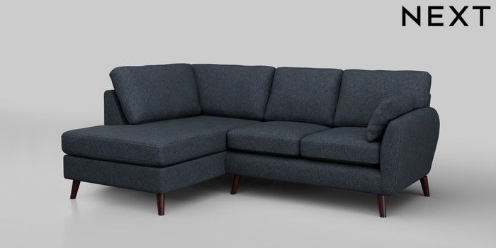 6.12.1 Buy Wilson Medium Corner Chaise - Left Hand Tweedy Chenille Navy Blue Retro Tapered - Dark Brown from the Next UK online shop Click here to use our accessible website