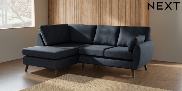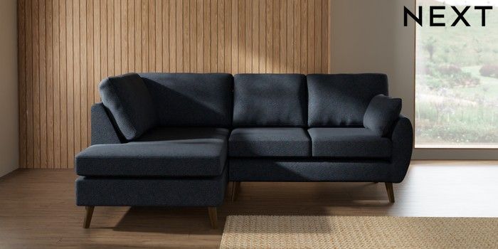 7.3.1 Buy Wilson Medium Corner Chaise - Left Hand Tweedy Chenille Navy Blue Retro Tapered - Mid from the Next UK online shop