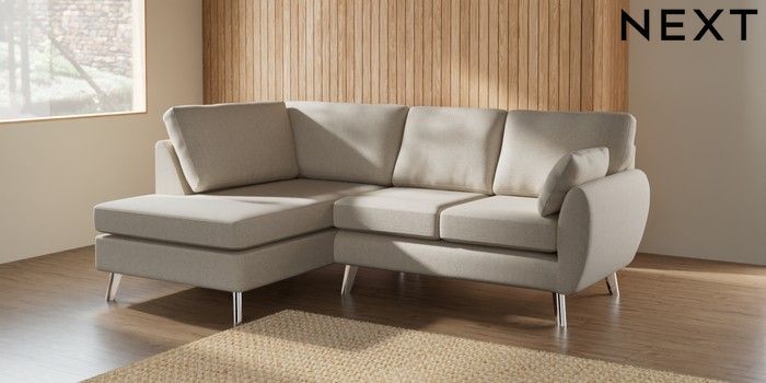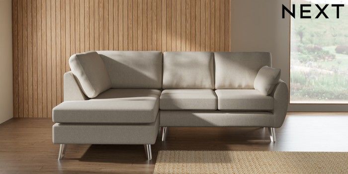 7.3.1 Buy Wilson Medium Corner Chaise - Left Hand Tweedy Chenille Oyster Metal Tapered - Chrome from the Next UK online shop