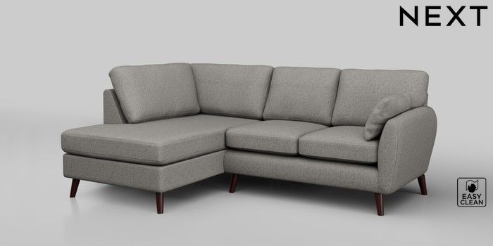 6.12.1 Buy Wilson Medium Corner Chaise - Left Hand Woven Chenille Easy Clean Light Grey Retro Tapered - Dark Brown from the Next UK online shop Click here to use our accessible website