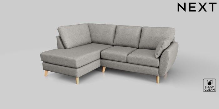 6.12.1 Buy Wilson Medium Corner Chaise - Left Hand Woven Chenille Easy Clean Light Grey Retro Tapered - Light from the Next UK online shop Click here to use our accessible website