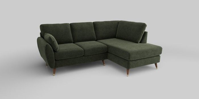 6.12.1 Buy Wilson Medium Corner Chaise - Right Hand Boucle Chenille Dark Moss Green Low Retro Tapered Metal Cap - Mid from the Next UK online shop Click here to use our accessible website