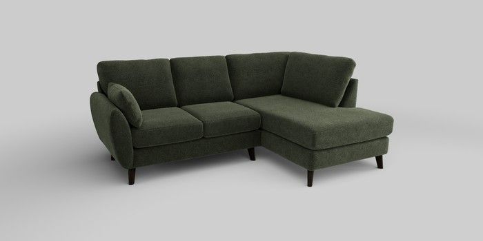 6.12.1 Buy Wilson Medium Corner Chaise - Right Hand Boucle Chenille Dark Moss Green Retro Tapered - Dark from the Next UK online shop Click here to use our accessible website