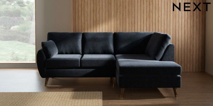 7.3.1 Buy Wilson Medium Corner Chaise - Right Hand Boucle Chenille Dark Slate Blue Low Retro Tapered Metal Cap - Mid from the Next UK online shop