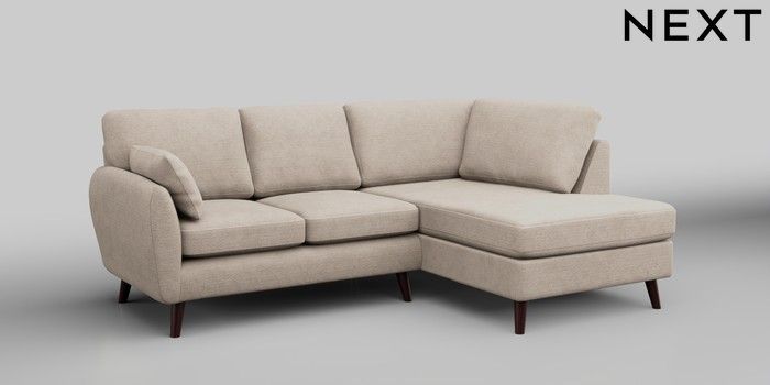 6.12.1 Buy Wilson Medium Corner Chaise - Right Hand Boucle Chenille Oyster Retro Tapered - Dark Brown from the Next UK online shop Click here to use our accessible website