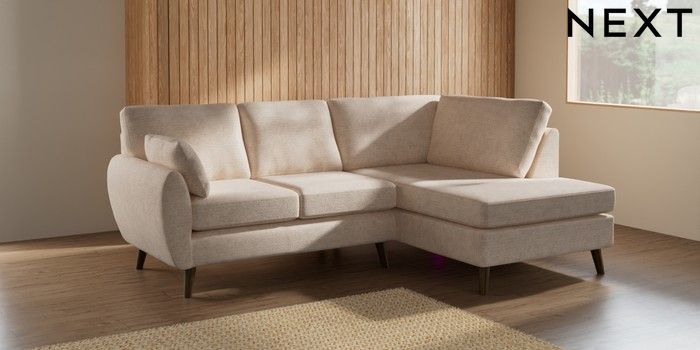 7.2.10 Buy Wilson Medium Corner Chaise - Right Hand Boucle Chenille Oyster Retro Tapered - Mid from the Next UK online shop Click here to use our accessible website