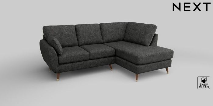6.12.1 Buy Wilson Medium Corner Chaise - Right Hand Boucle Weave Easy Clean Charcoal Grey Low Retro Tapered Metal Cap - Mid from the Next UK online shop Click here to use our accessible website