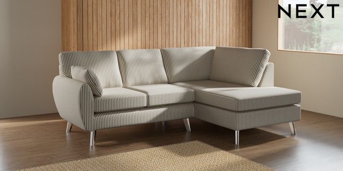 7.2.10 Buy Wilson Medium Corner Chaise - Right Hand Chenille Stripe Moss Green Metal Tapered - Chrome from the Next UK online shop Click here to use our accessible website