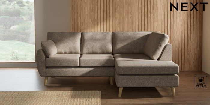 7.3.1 Buy Wilson Medium Corner Chaise - Right Hand Chunky Boucle Easy Clean Mid Natural Retro Tapered - Light from the Next UK online shop