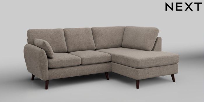 6.12.1 Buy Wilson Medium Corner Chaise - Right Hand Chunky Chenille Light Dove Retro Tapered - Dark Brown from the Next UK online shop Click here to use our accessible website