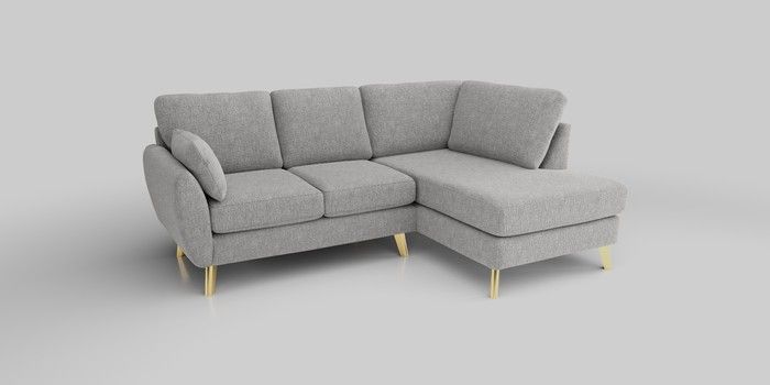 6.12.1 Buy Wilson Medium Corner Chaise - Right Hand Chunky Chenille Light Grey Metal Tapered - Gold from the Next UK online shop Click here to use our accessible website