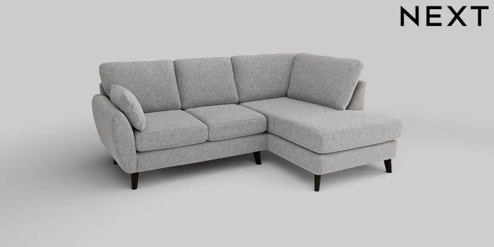 6.12.1 Buy Wilson Medium Corner Chaise - Right Hand Chunky Chenille Light Grey Retro Tapered - Dark from the Next UK online shop Click here to use our accessible website