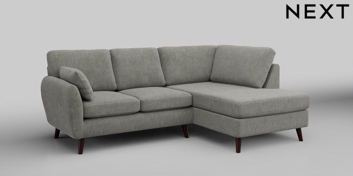 6.12.1 Buy Wilson Medium Corner Chaise - Right Hand Chunky Chenille Light Grey Retro Tapered - Dark Brown from the Next UK online shop Click here to use our accessible website