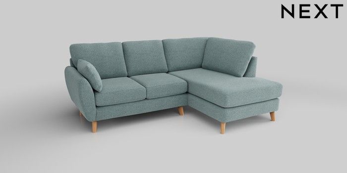 6.12.1 Buy Wilson Medium Corner Chaise - Right Hand Chunky Chenille Light Teal Green Retro Tapered - Light from the Next UK online shop Click here to use our accessible website