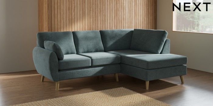 7.2.10 Buy Wilson Medium Corner Chaise - Right Hand Chunky Chenille Light Teal Green Retro Tapered - Light from the Next UK online shop Click here to use our accessible website