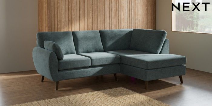 7.3.1 Buy Wilson Medium Corner Chaise - Right Hand Chunky Chenille Light Teal Green Retro Tapered - Mid from the Next UK online shop