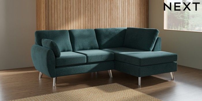 7.3.1 Buy Wilson Medium Corner Chaise - Right Hand Chunky Chenille Mid Teal Green Metal Tapered - Chrome from the Next UK online shop Click here to use our accessible website