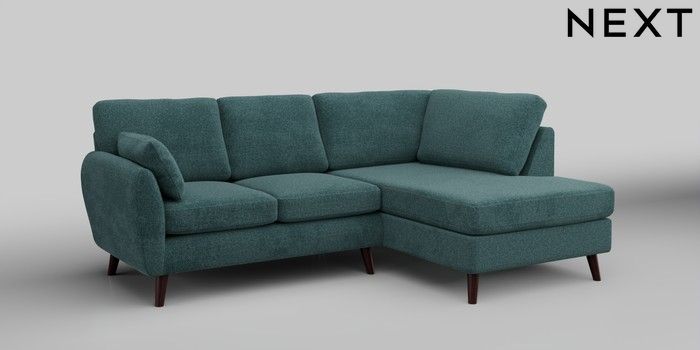 6.12.1 Buy Wilson Medium Corner Chaise - Right Hand Chunky Chenille Mid Teal Green Retro Tapered - Dark Brown from the Next UK online shop Click here to use our accessible website