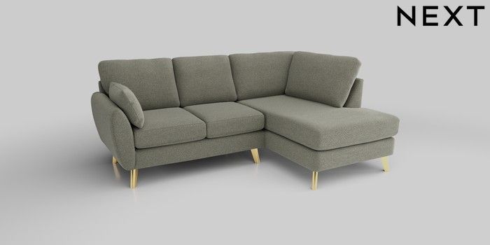 6.12.1 Buy Wilson Medium Corner Chaise - Right Hand Chunky Marl Light Olive Green Metal Tapered - Gold from the Next UK online shop Click here to use our accessible website