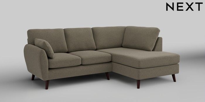6.12.1 Buy Wilson Medium Corner Chaise - Right Hand Chunky Marl Light Olive Green Retro Tapered - Dark Brown from the Next UK online shop Click here to use our accessible website