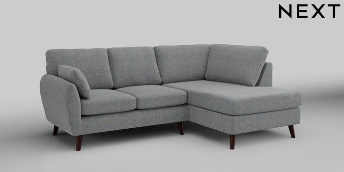6.12.1 Buy Wilson Medium Corner Chaise - Right Hand Chunky Marl Mid Grey Retro Tapered - Dark Brown from the Next UK online shop Click here to use our accessible website
