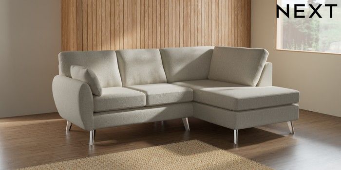 7.2.10 Buy Wilson Medium Corner Chaise - Right Hand Chunky Texture Oyster Metal Tapered - Chrome from the Next UK online shop Click here to use our accessible website
