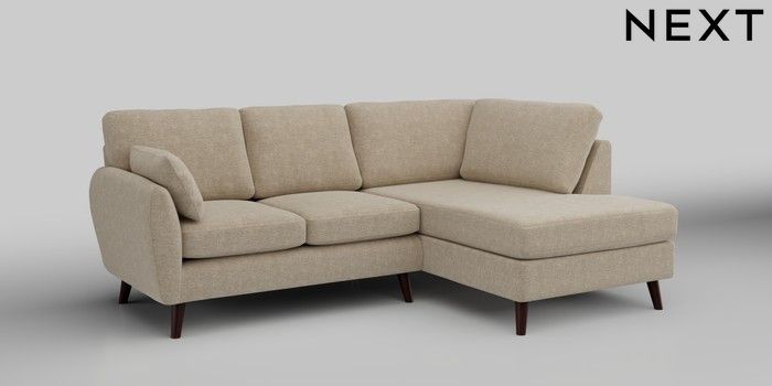 6.12.1 Buy Wilson Medium Corner Chaise - Right Hand Chunky Weave Cream Retro Tapered - Dark Brown from the Next UK online shop Click here to use our accessible website