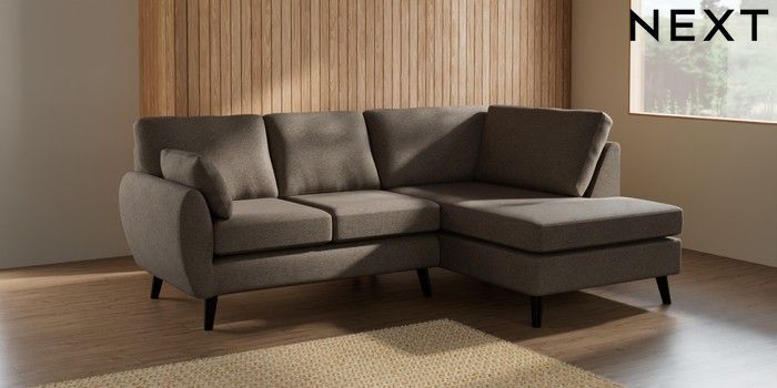 7.3.1 Buy Wilson Medium Corner Chaise - Right Hand Chunky Weave Dark Natural Retro Tapered - Dark from the Next UK online shop