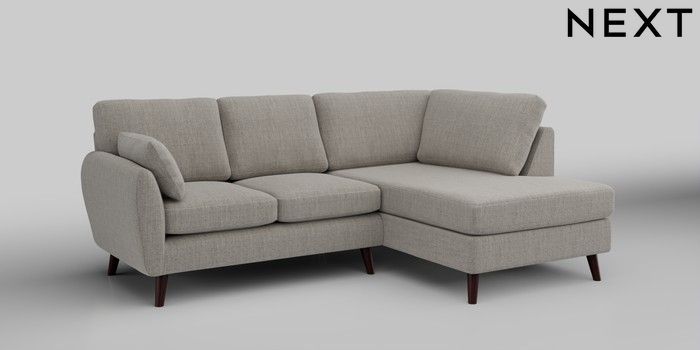 6.12.1 Buy Wilson Medium Corner Chaise - Right Hand Chunky Weave Dove Grey Retro Tapered - Dark Brown from the Next UK online shop Click here to use our accessible website