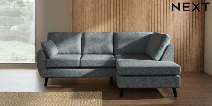 7.3.1 Buy Wilson Medium Corner Chaise - Right Hand Chunky Weave Mid Blue Retro Tapered - Dark from the Next UK online shop