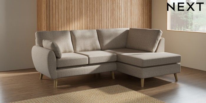 7.2.10 Buy Wilson Medium Corner Chaise - Right Hand Chunky Weave Mid Natural Retro Tapered - Light from the Next UK online shop Click here to use our accessible website