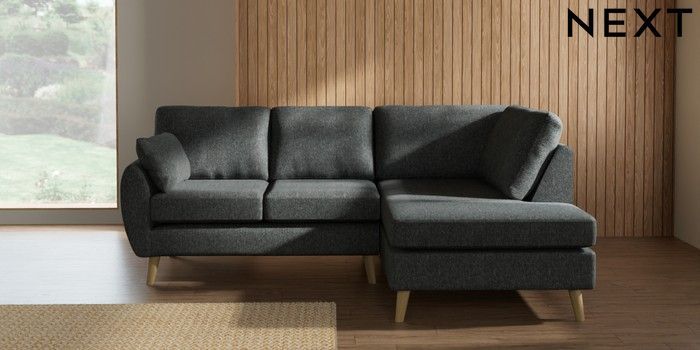 7.3.1 Buy Wilson Medium Corner Chaise - Right Hand Cotswold Chenille Dark Grey Retro Tapered - Light from the Next UK online shop