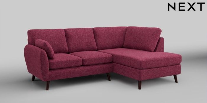 6.12.1 Buy Wilson Medium Corner Chaise - Right Hand Cotswold Chenille Dark Raspberry Pink Retro Tapered - Dark Brown from the Next UK online shop Click here to use our accessible website