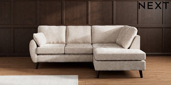 7.3.1 Buy Wilson Medium Corner Chaise - Right Hand Distressed Velour Mid Natural Retro Tapered - Dark from the Next UK online shop