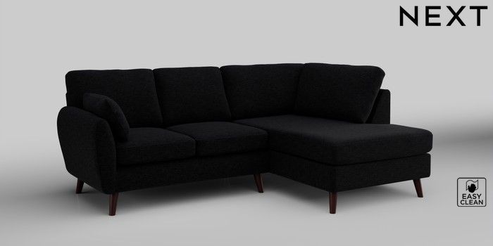 6.12.1 Buy Wilson Medium Corner Chaise - Right Hand Fine Chenille Easy Clean Black Retro Tapered - Dark Brown from the Next UK online shop Click here to use our accessible website