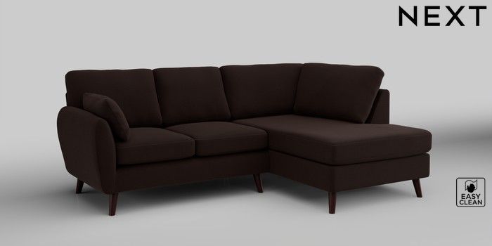 6.12.1 Buy Wilson Medium Corner Chaise - Right Hand Fine Chenille Easy Clean Chocolate Brown Retro Tapered - Dark Brown from the Next UK online shop Click here to use our accessible website