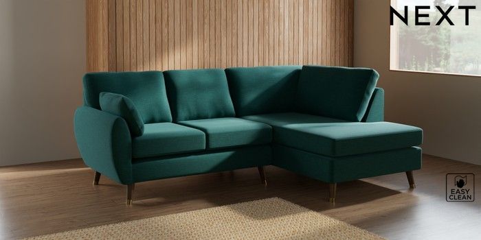 7.3.1 Buy Wilson Medium Corner Chaise - Right Hand Fine Chenille Easy Clean Dark Juniper Green Low Retro Tapered Metal Cap - Mid from the Next UK online shop Click here to use our accessible website