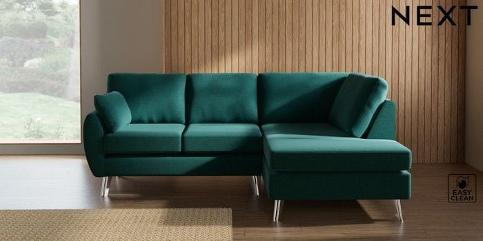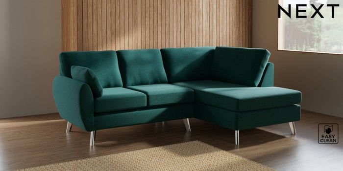 7.3.1 Buy Wilson Medium Corner Chaise - Right Hand Fine Chenille Easy Clean Dark Juniper Green Metal Tapered - Chrome from the Next UK online shop Click here to use our accessible website