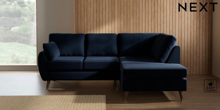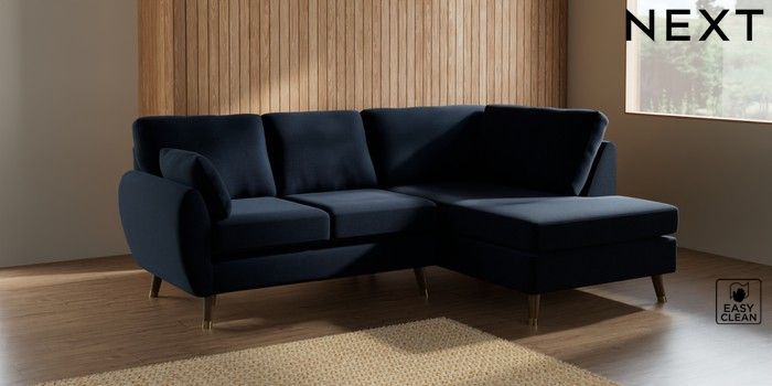 7.3.1 Buy Wilson Medium Corner Chaise - Right Hand Fine Chenille Easy Clean Dark Navy Blue Low Retro Tapered Metal Cap - Mid from the Next UK online shop
