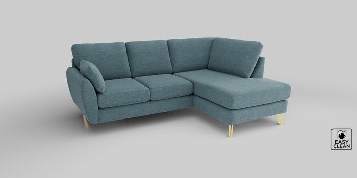 6.12.1 Buy Wilson Medium Corner Chaise - Right Hand Fine Chenille Easy Clean Mid Blue Metal Tapered - Gold from the Next UK online shop Click here to use our accessible website